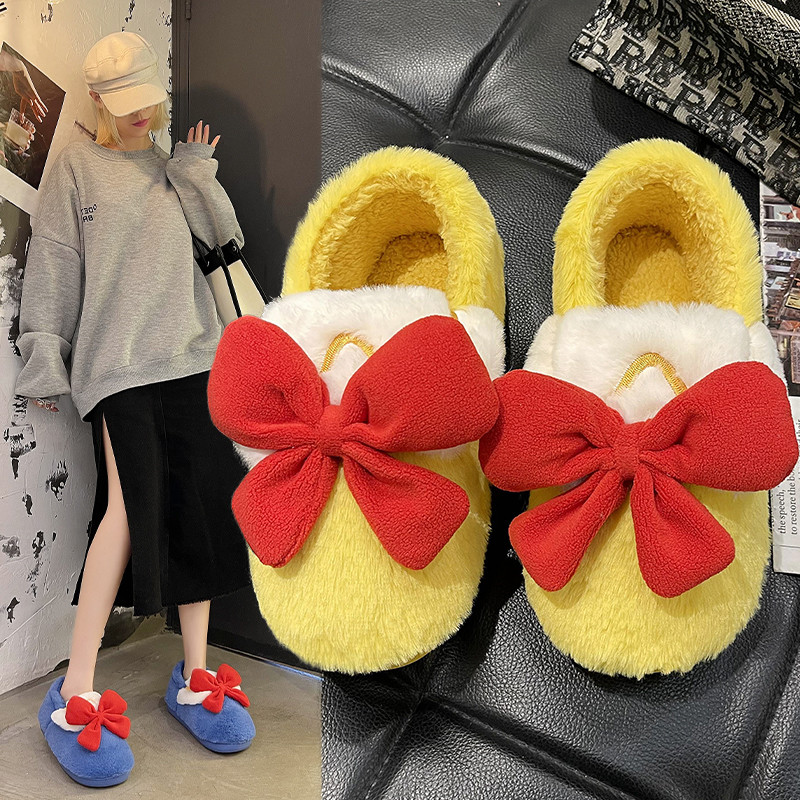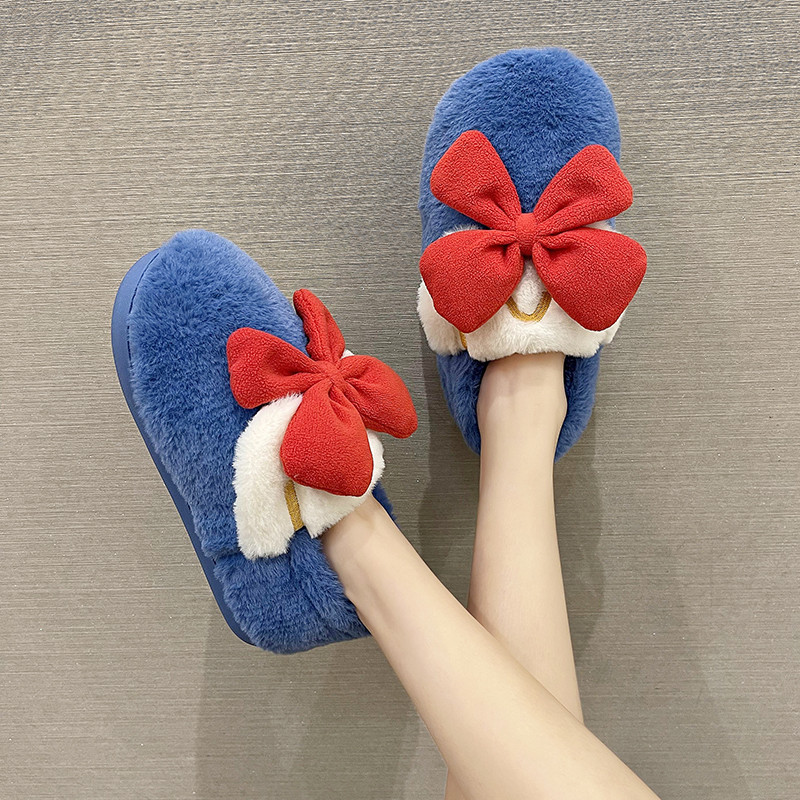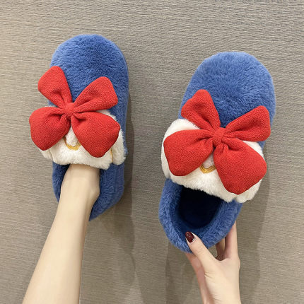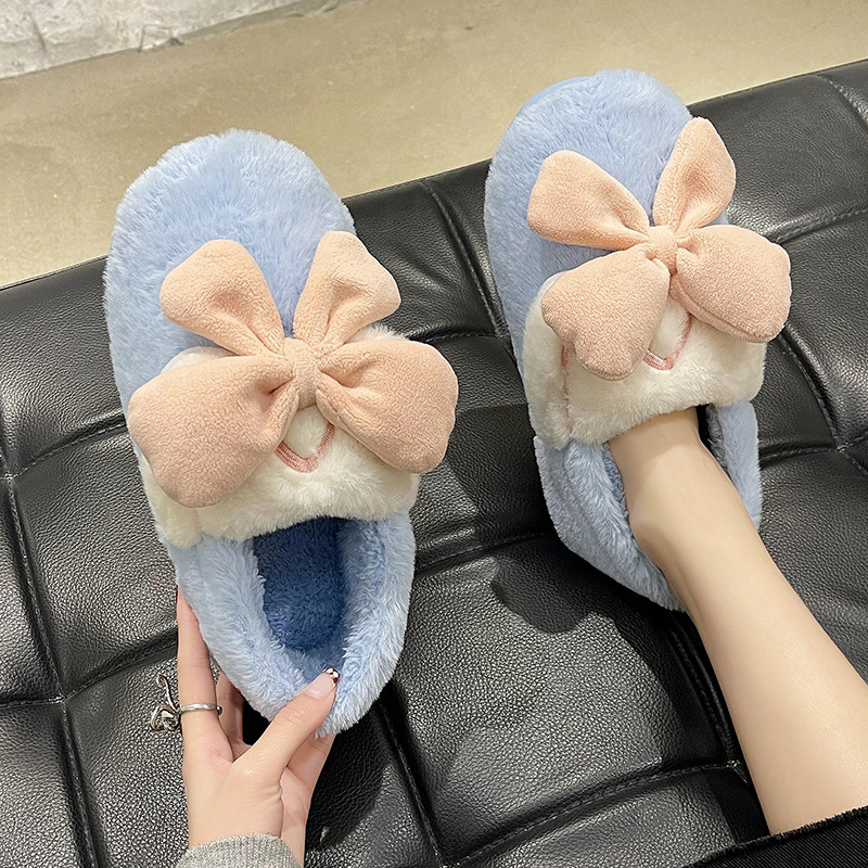 可爱少女心蝴蝶结包跟保暖棉拖鞋