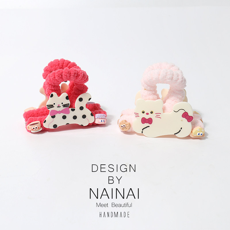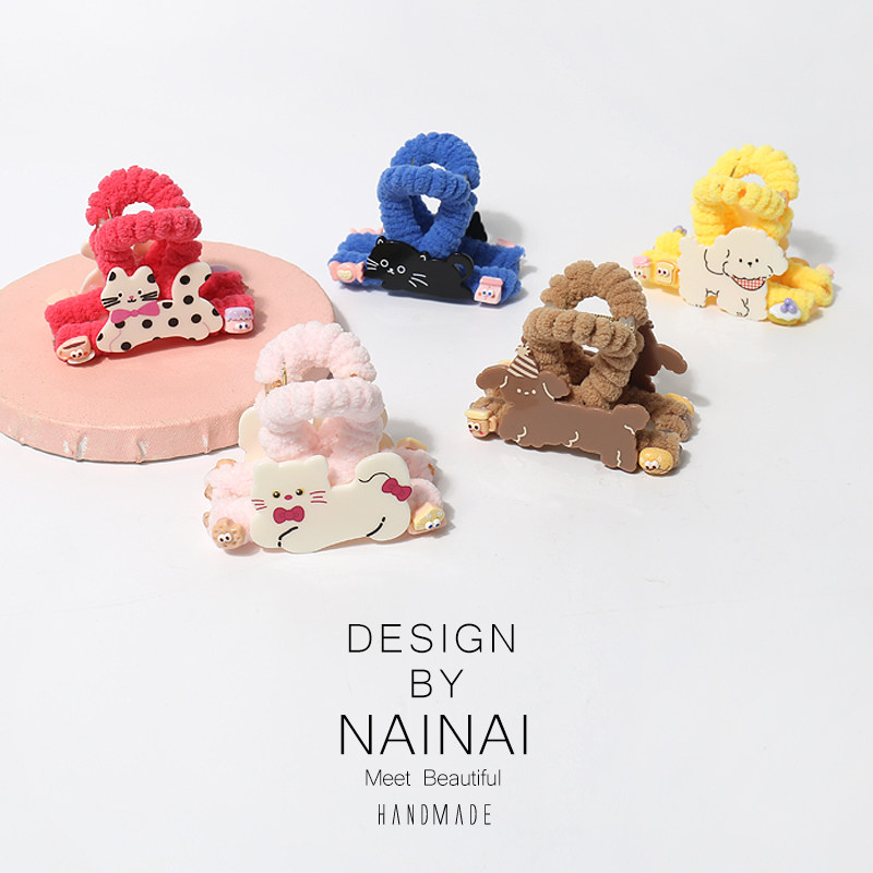 彩色泰迪小狗小猫抓夹可爱多巴胺色系后脑勺盘发抓夹日韩简约夹子