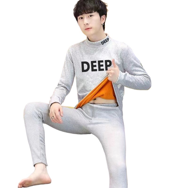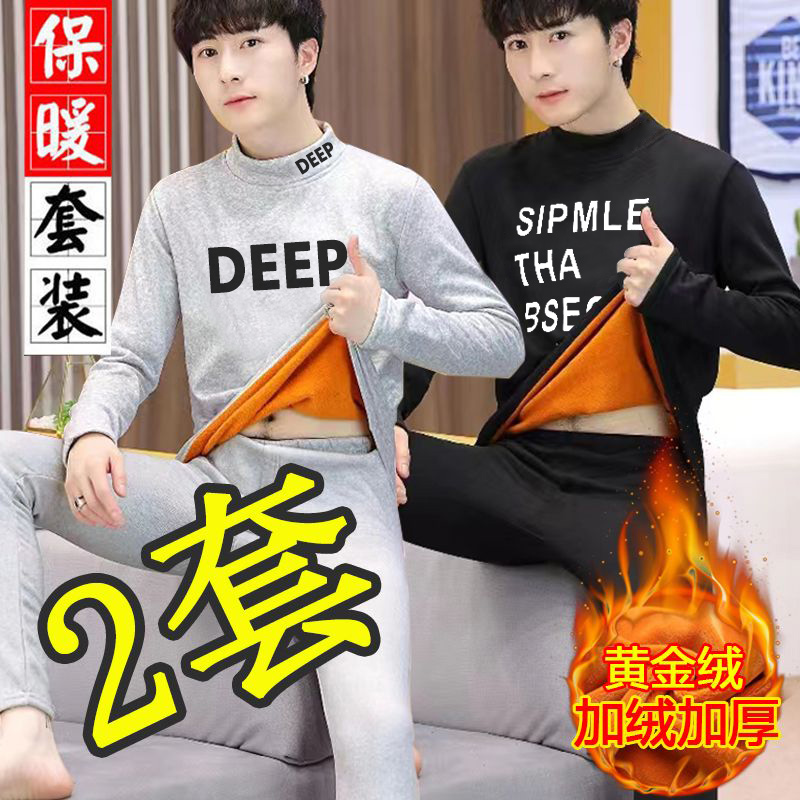 加绒加厚套装男毛衫青少年内衣秋衣秋裤学生保暖大童秋冬季中领