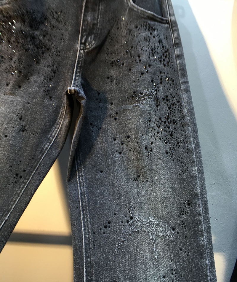 欧洲站2023秋装欧货新款重工高温烫钻高腰显瘦弹力直筒牛仔裤女裤