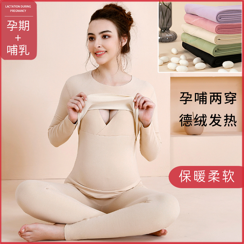 孕妇秋衣秋裤套装德绒哺乳保暖内衣女怀孕期产后月子服睡衣秋冬款