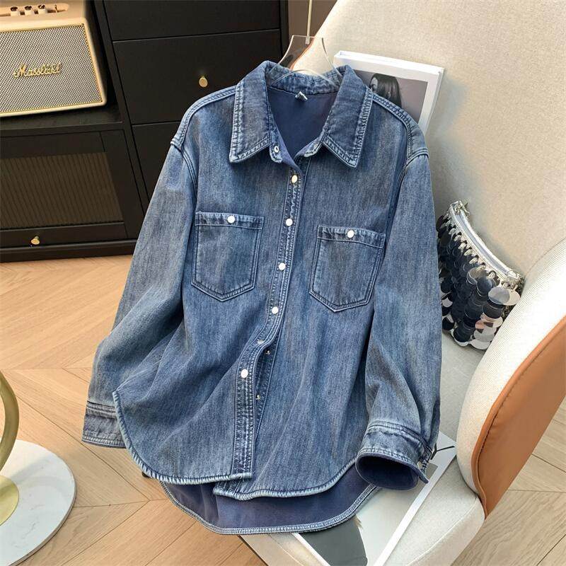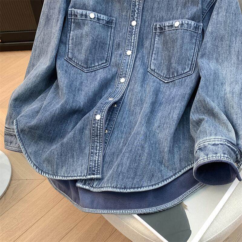 秋冬新款加绒牛仔衬衫女韩版休闲加厚衬衣宽松打底叠穿保暖上衣潮