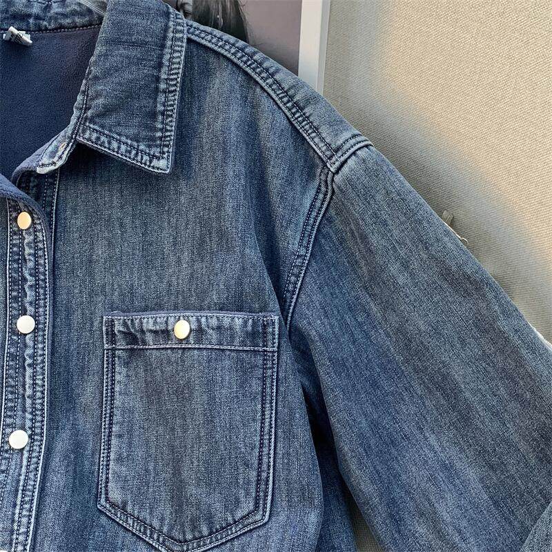 秋冬新款加绒加厚长袖牛仔衬衫女