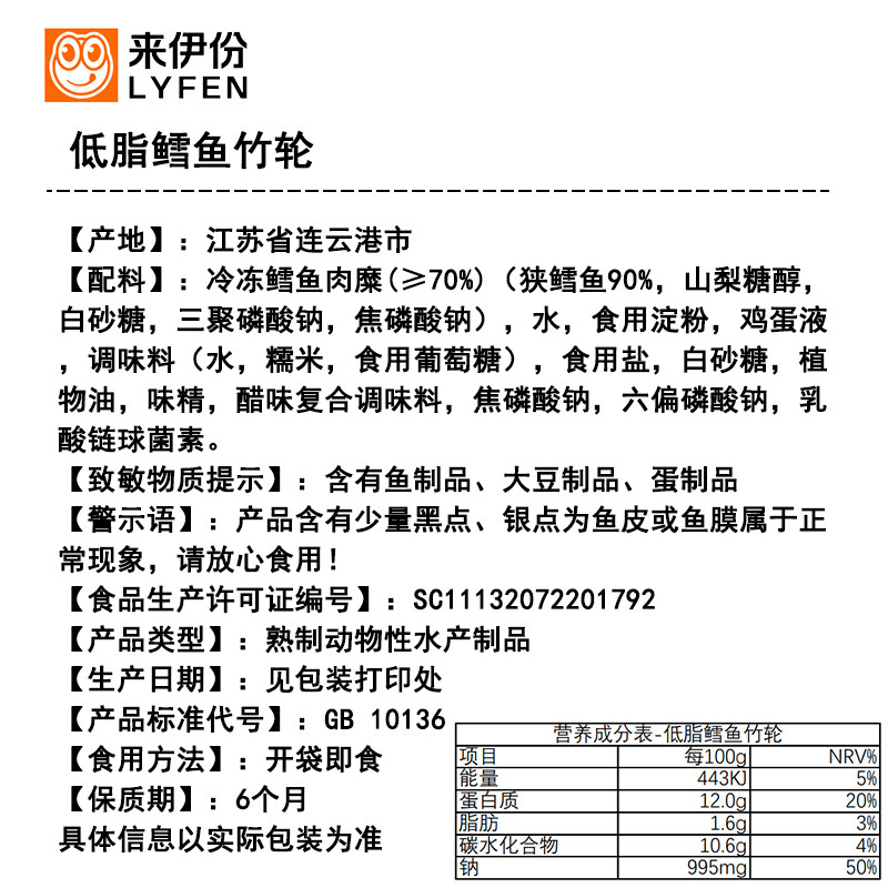 来伊份鳕鱼竹轮低脂高蛋白小包装