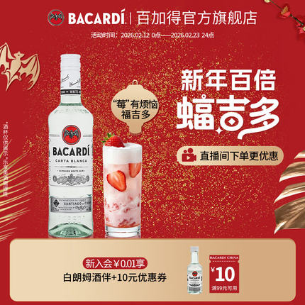 【百搭基酒】Bacardi百加得白朗姆酒500ml洋酒莫吉托基酒鸡尾酒