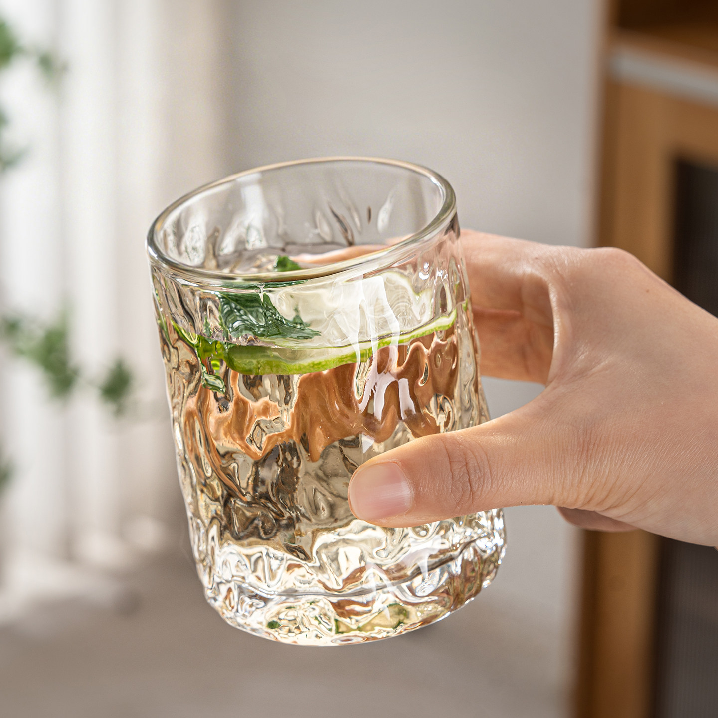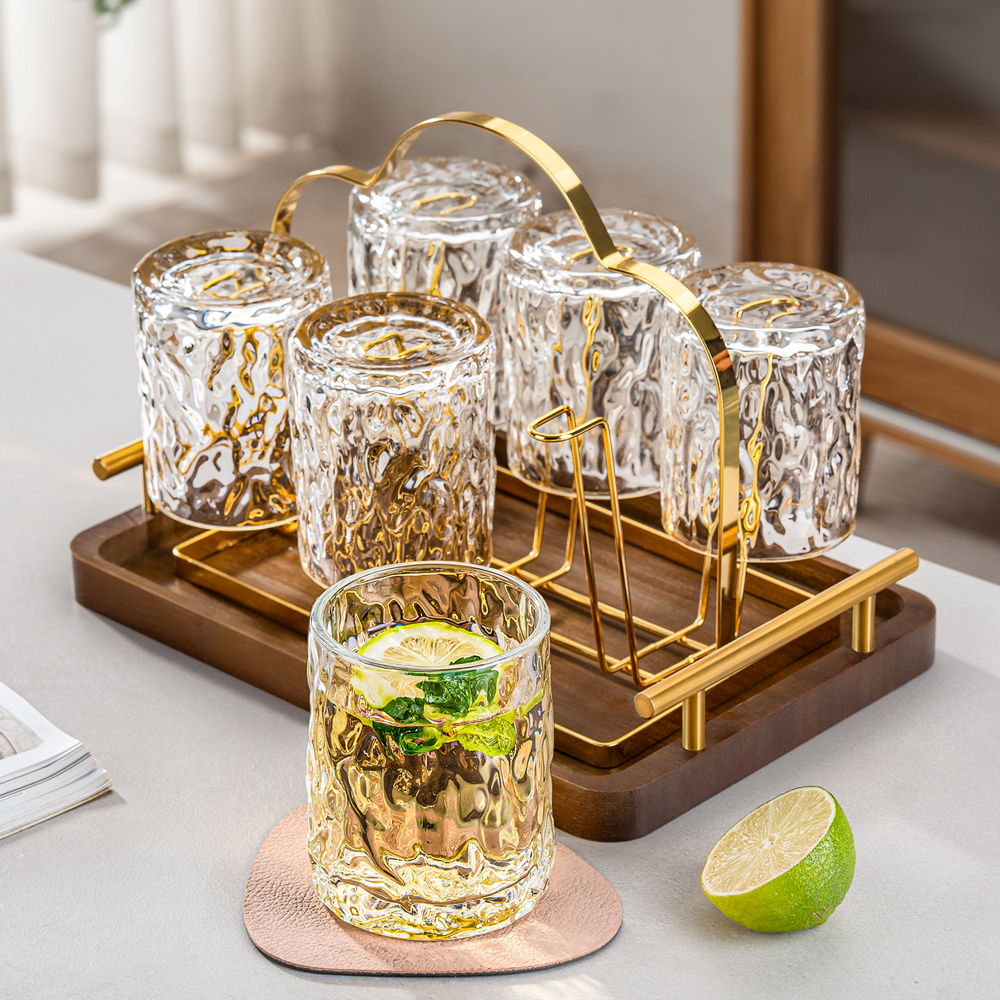 高颜值冰川纹玻璃杯套装家用待客喝水杯子轻奢客厅茶杯高级感水具