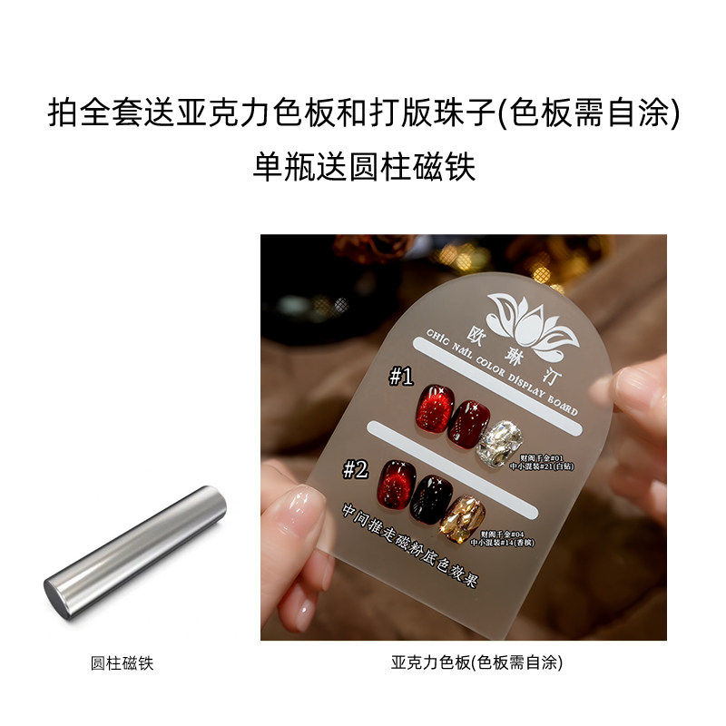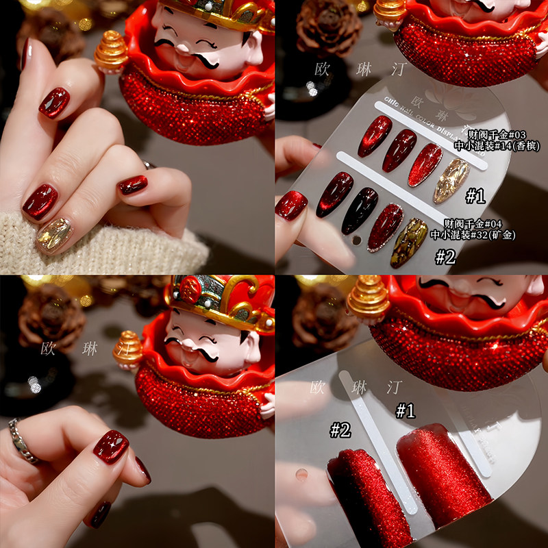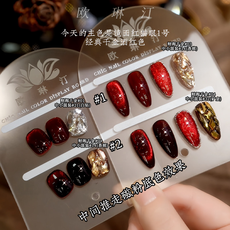 欧琳汀美甲镜面红猫眼