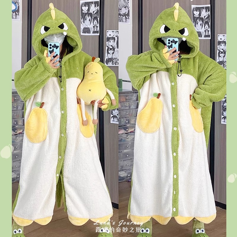 冬季珊瑚绒睡袍女加绒加厚2024新款卡通可爱卡皮巴拉睡衣学生外穿