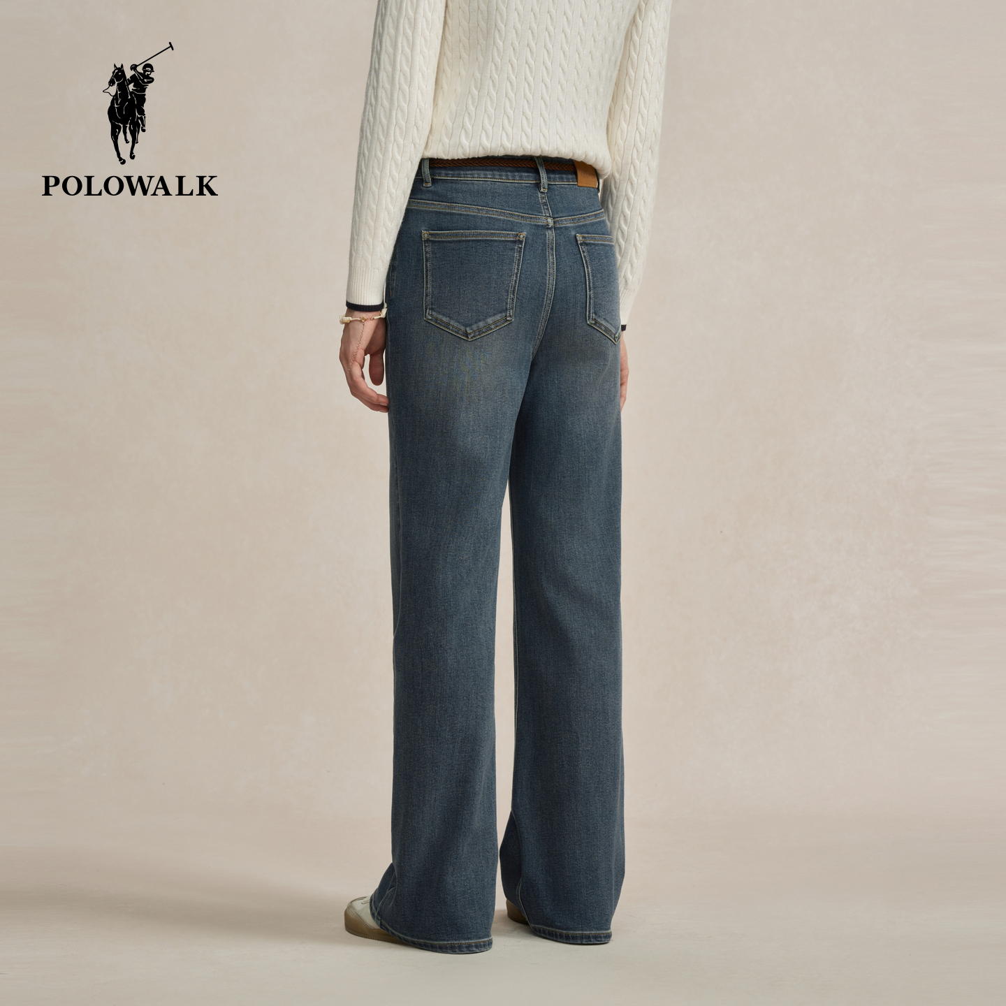POLOWALK女装2025秋冬裤新款女士牛仔裤高腰显瘦喇叭裤复古长裤子