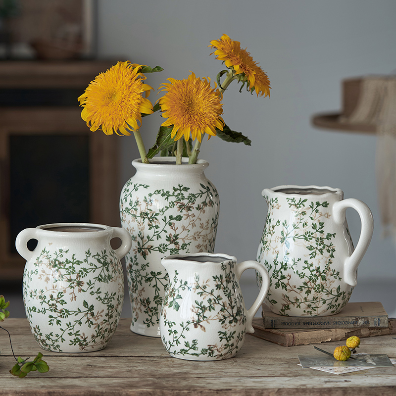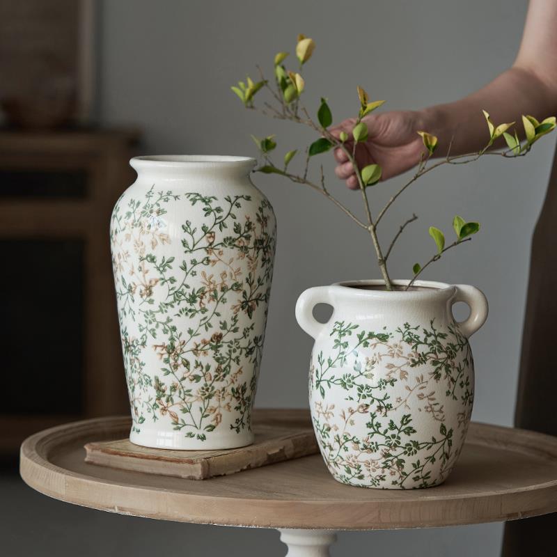 复古乡村田园风陶瓷花瓶摆件水培插花水养花器客厅餐桌装饰高级感