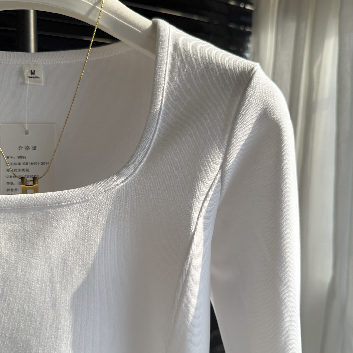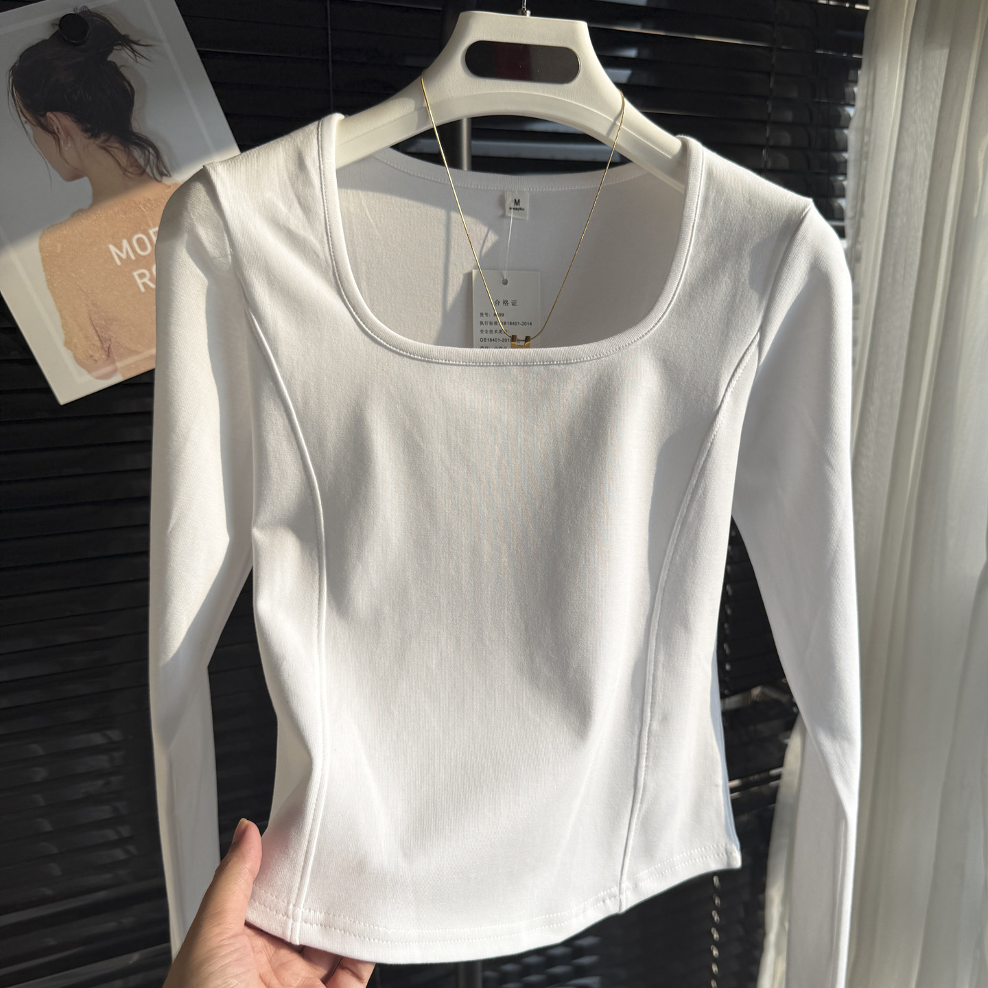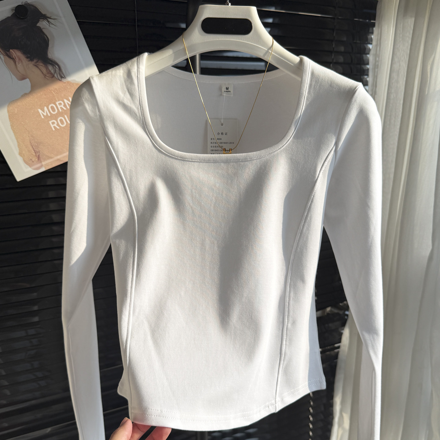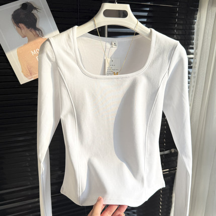2025秋装新款正肩长袖t恤女设计感鱼骨棉质洋气修身显瘦打底上衣