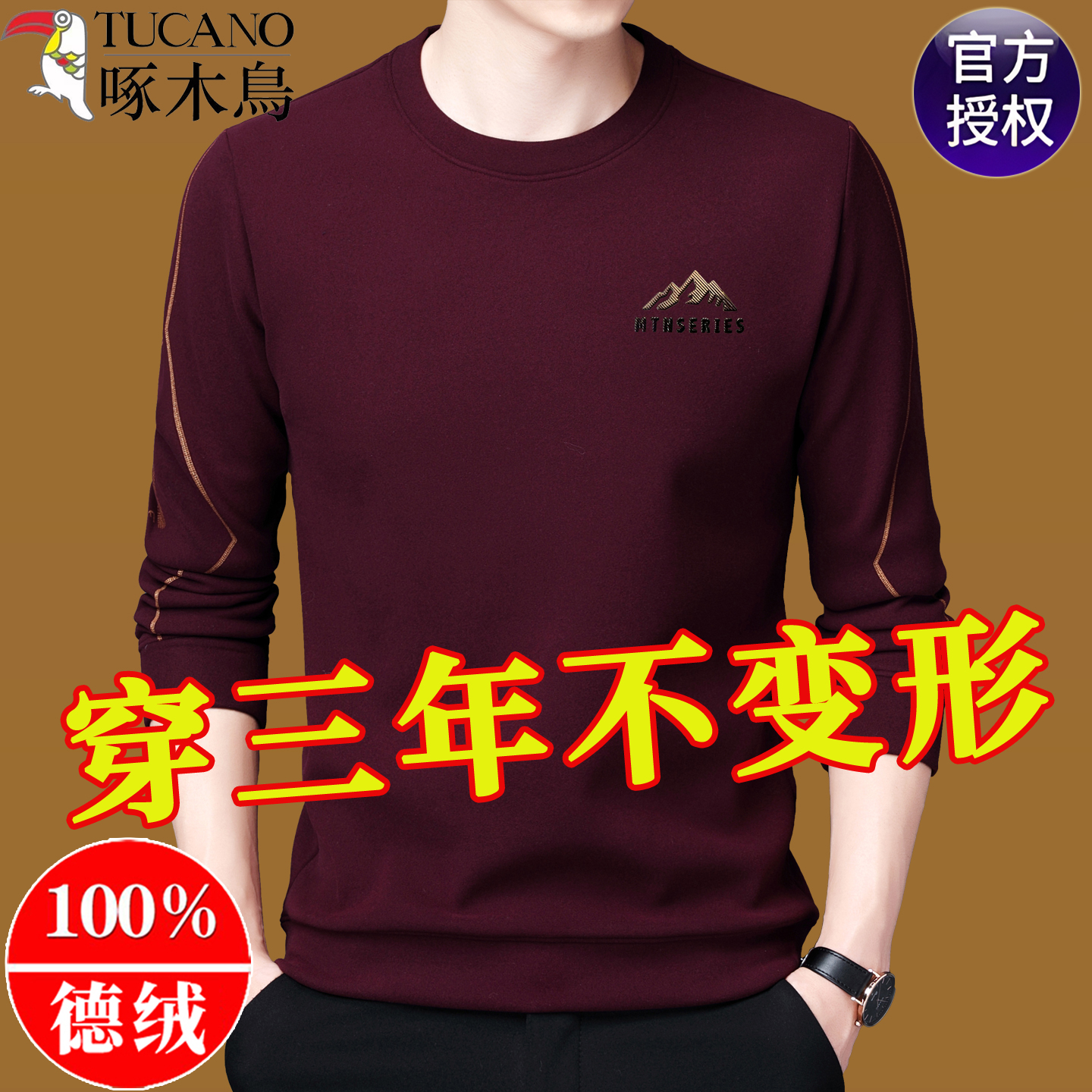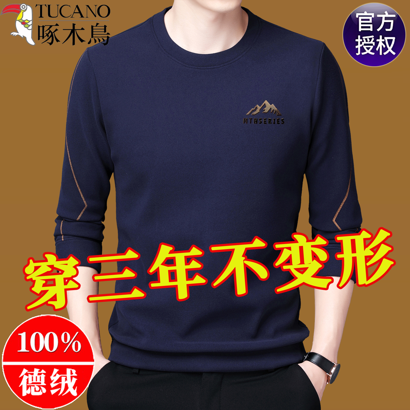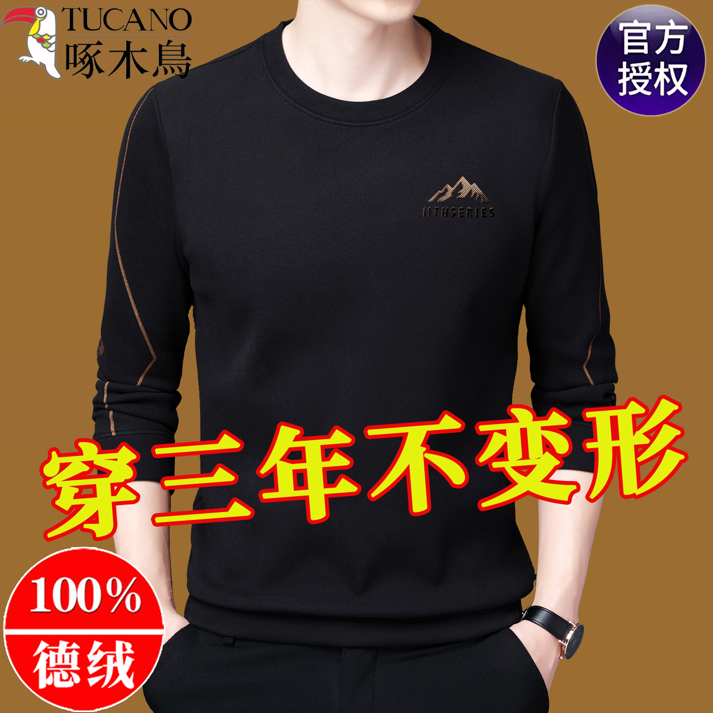 啄木鸟卫衣男秋冬款圆领男士长袖t恤德绒休闲宽松加绒加厚打底衫