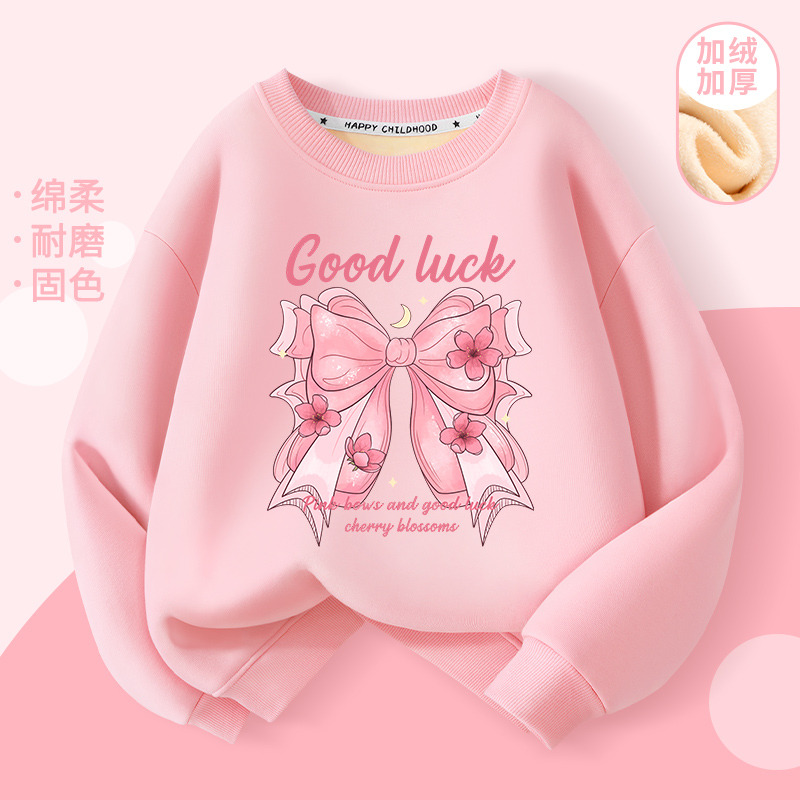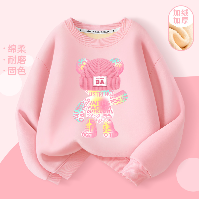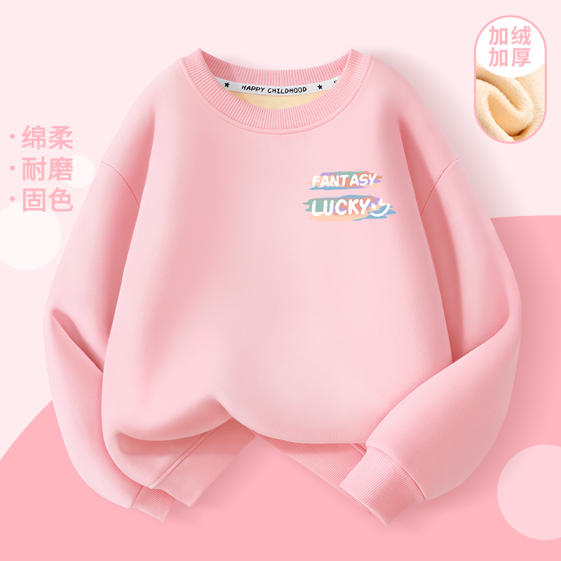 2024新款秋冬卫衣女童韩版时尚圆领加绒加厚百搭打底衫上衣冬装女