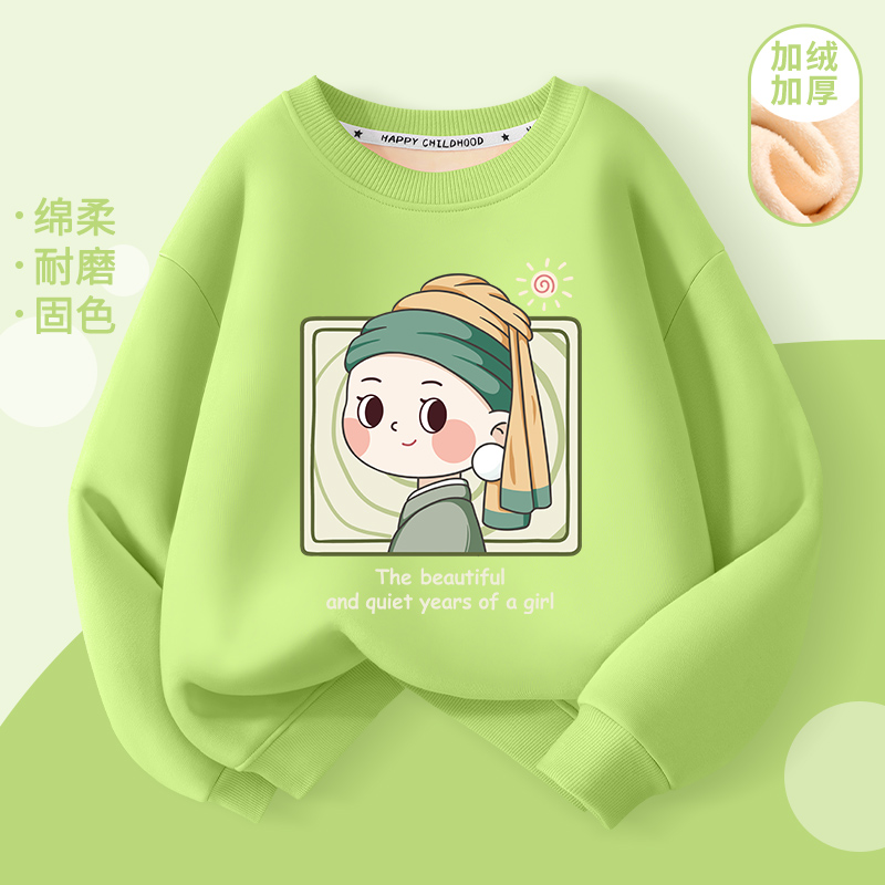 新款秋冬女童宽松圆领加绒卫衣