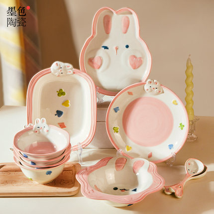墨色可爱陶瓷儿童饭碗家用2026新款高颜值酸奶甜品碗沙拉碗早餐盘