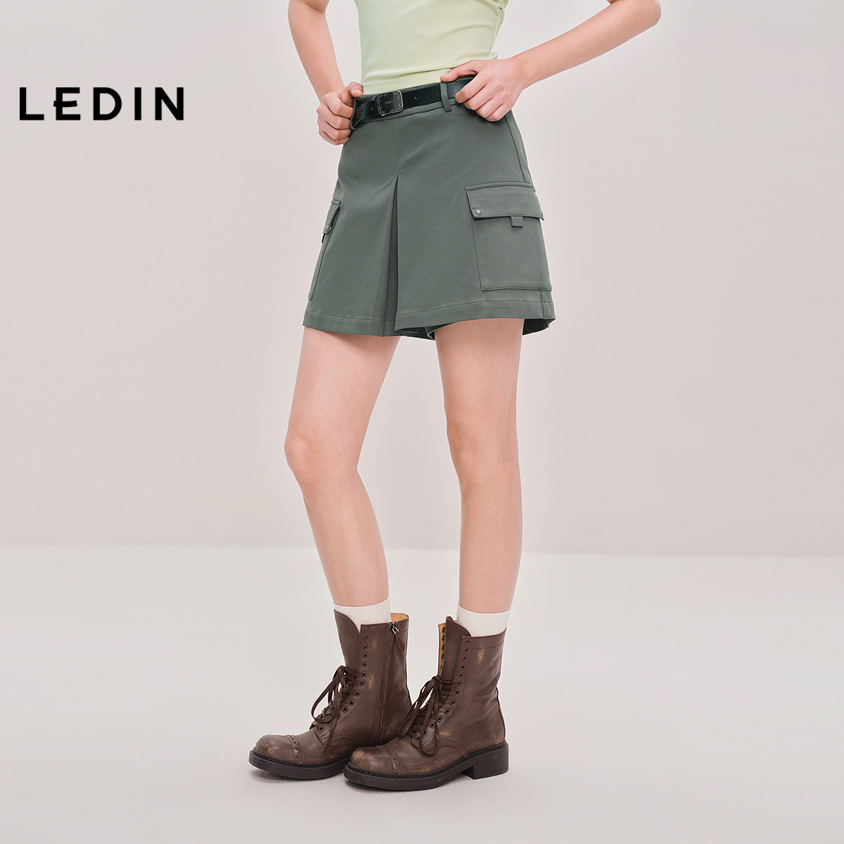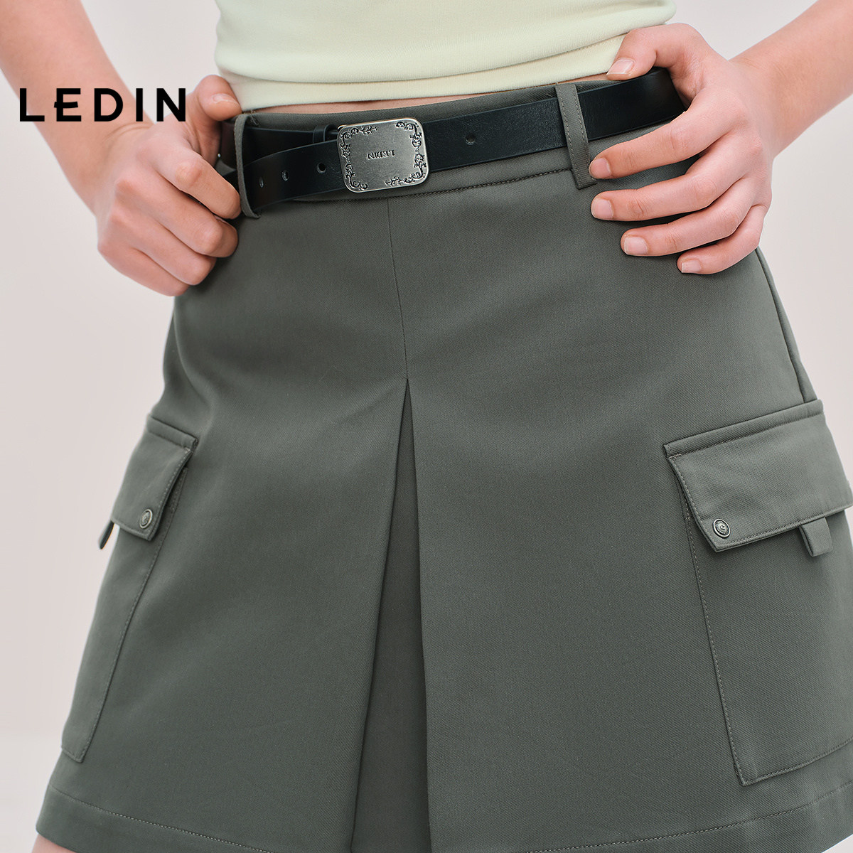 【商场同款】乐町设计感休闲裤百搭灰色宽松通勤中短裤C2GCF3124