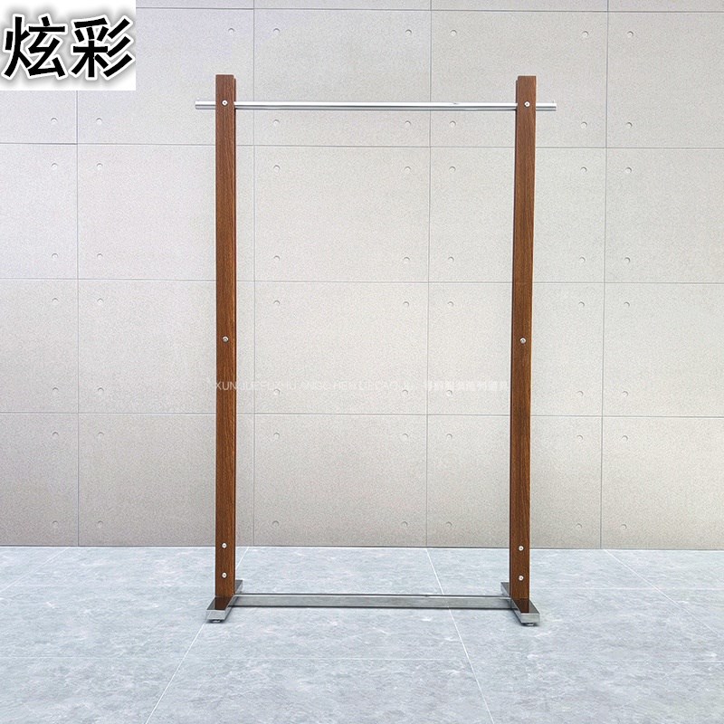 胡桃色服装店展示架落地式中岛架女装店挂衣架陈列架不锈钢展架