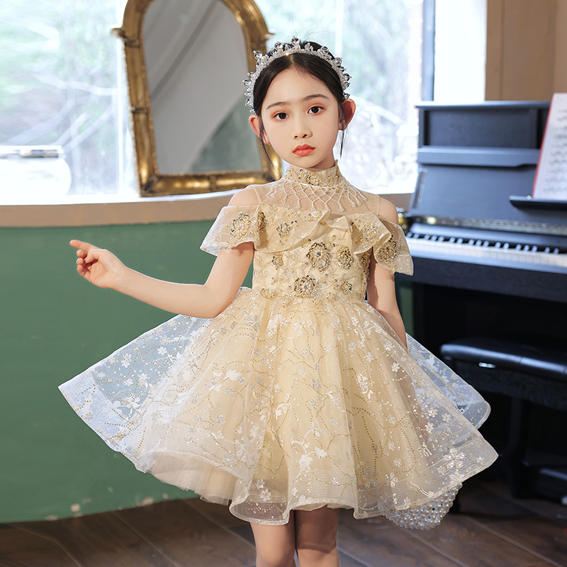 女童礼服2023年夏小女孩轻奢小众高端连衣裙儿童蓬蓬裙合唱演出服
