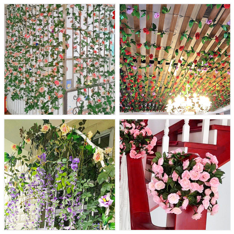 仿真玫瑰假花藤条蔓壁挂缠绕空调水管道遮挡装饰客厅吊顶塑料植物