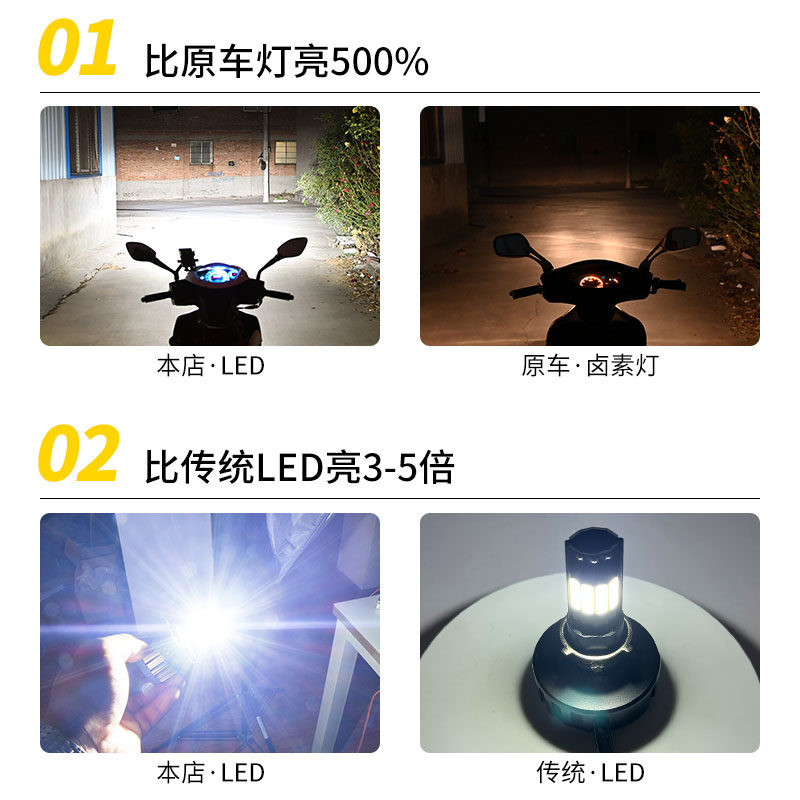强光摩托车灯泡电动车led大灯超亮 改装内置双爪三爪H4远近光一体