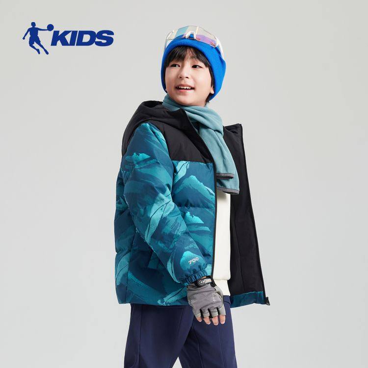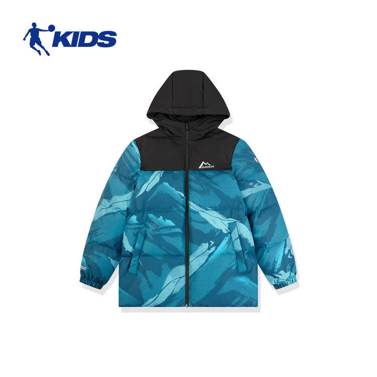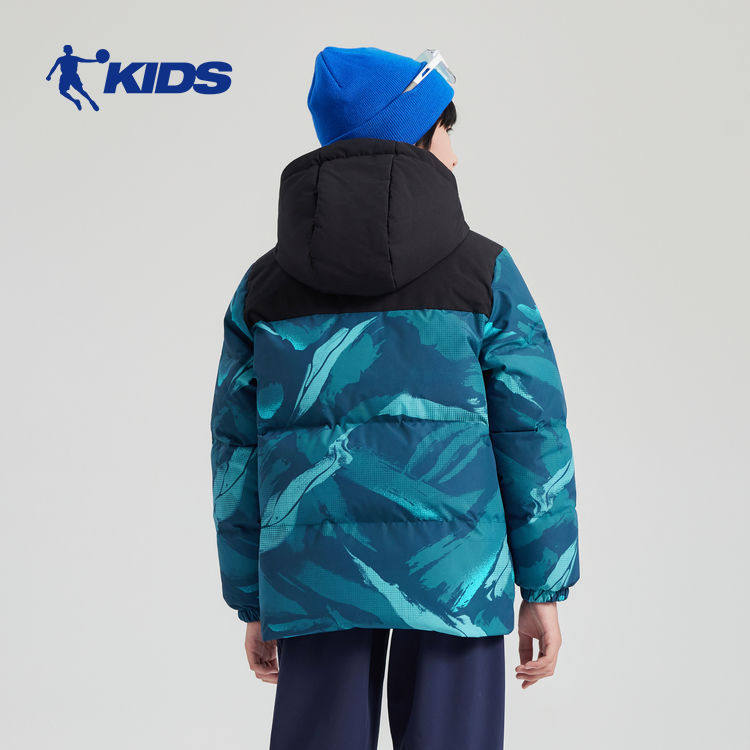 乔丹男童梭织羽绒服连帽加绒保暖儿童2025冬季大童羽绒外套面包服