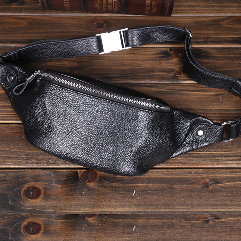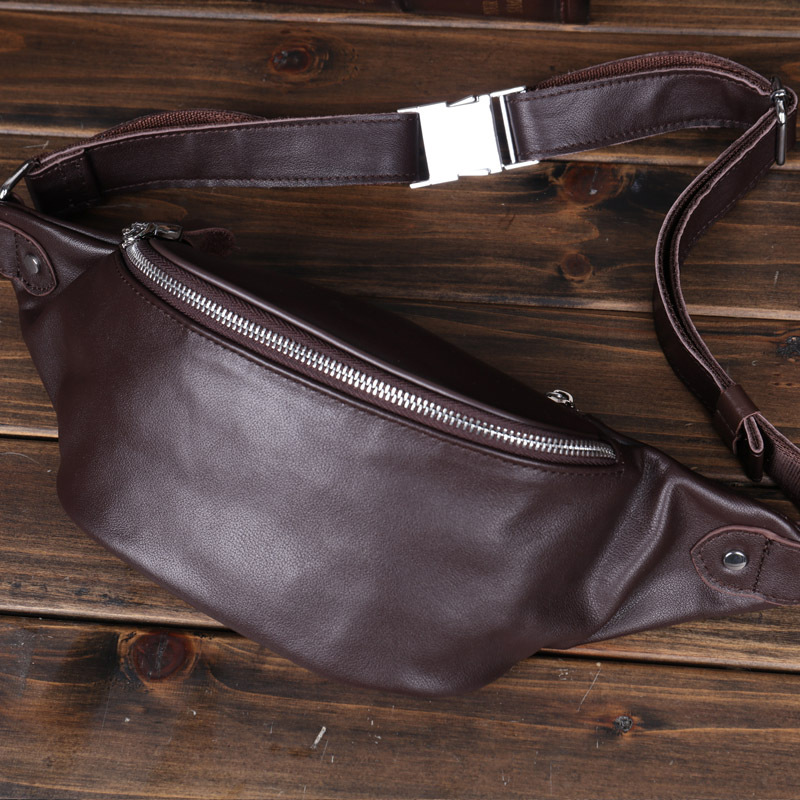 日系胸包男真皮跑步休闲手机腰包运动户外头层牛皮单肩斜挎包简约