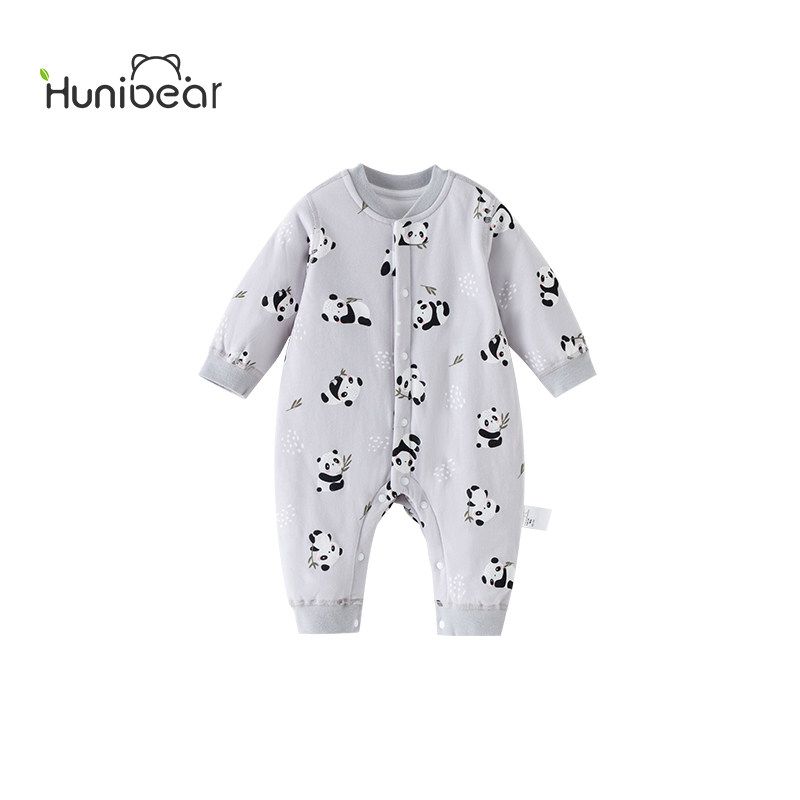 欢喜小熊婴儿哈衣爬服宝宝冬季夹棉保暖连体衣新生儿纯棉冬装衣服
