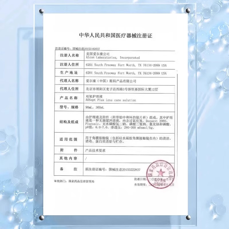 爱尔康蓝澈Pro双氧水360ml隐形眼镜护理液硬塑性形角膜接触镜