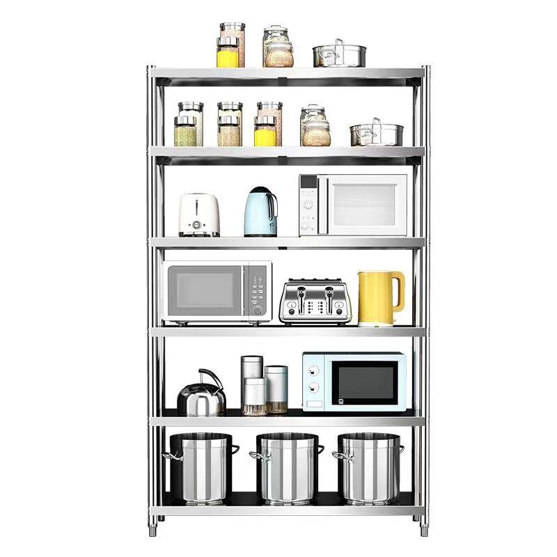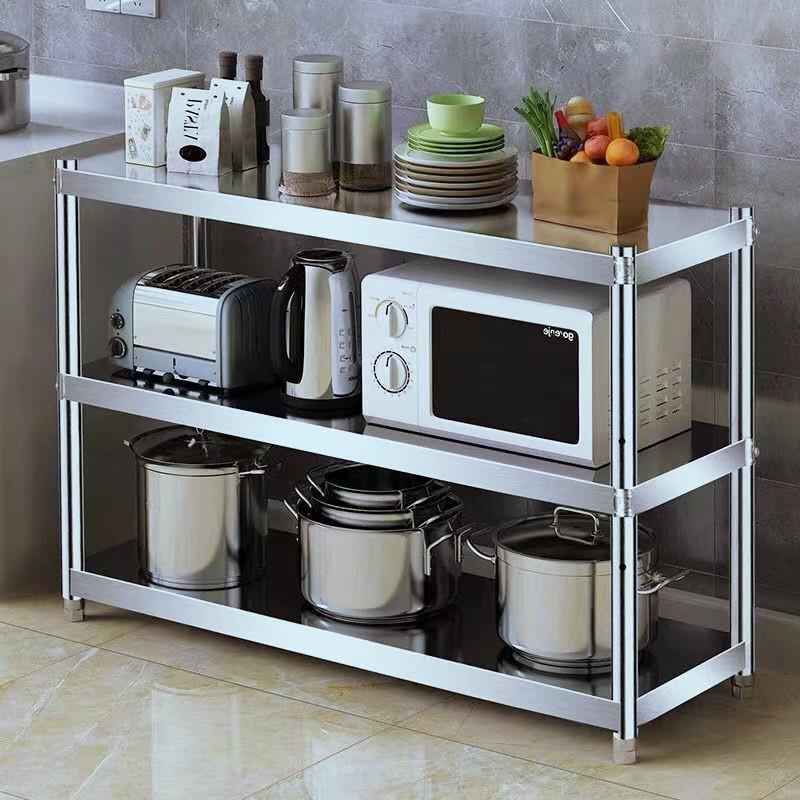 不锈钢厨房置物架家用落地多层收纳锅架微波炉架子烤箱架储物菜架
