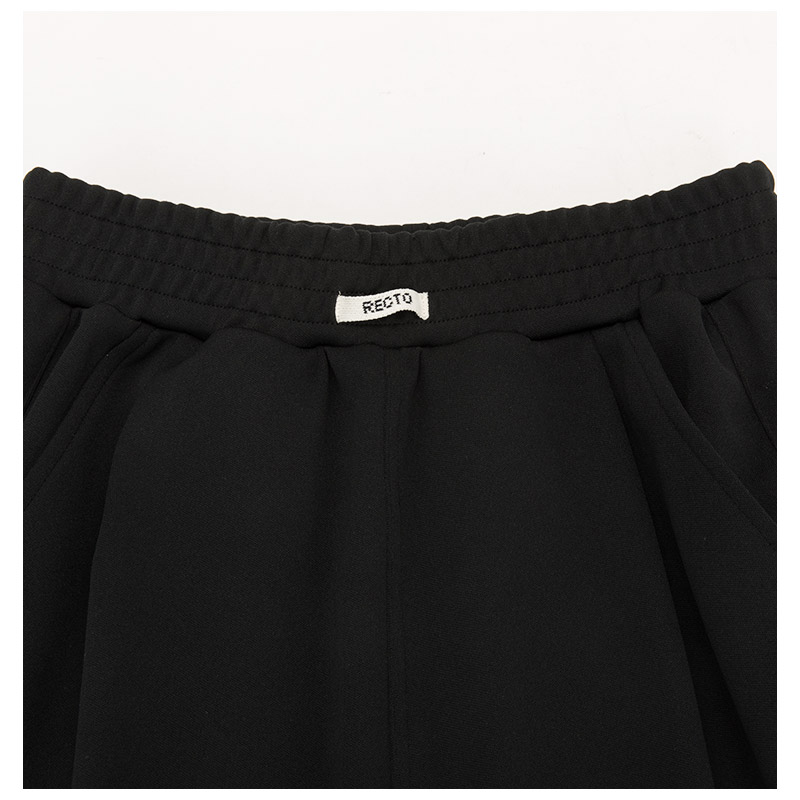 RECTO春季新款女士黑色日常通勤松紧腰直筒阔腿休闲西装长裤