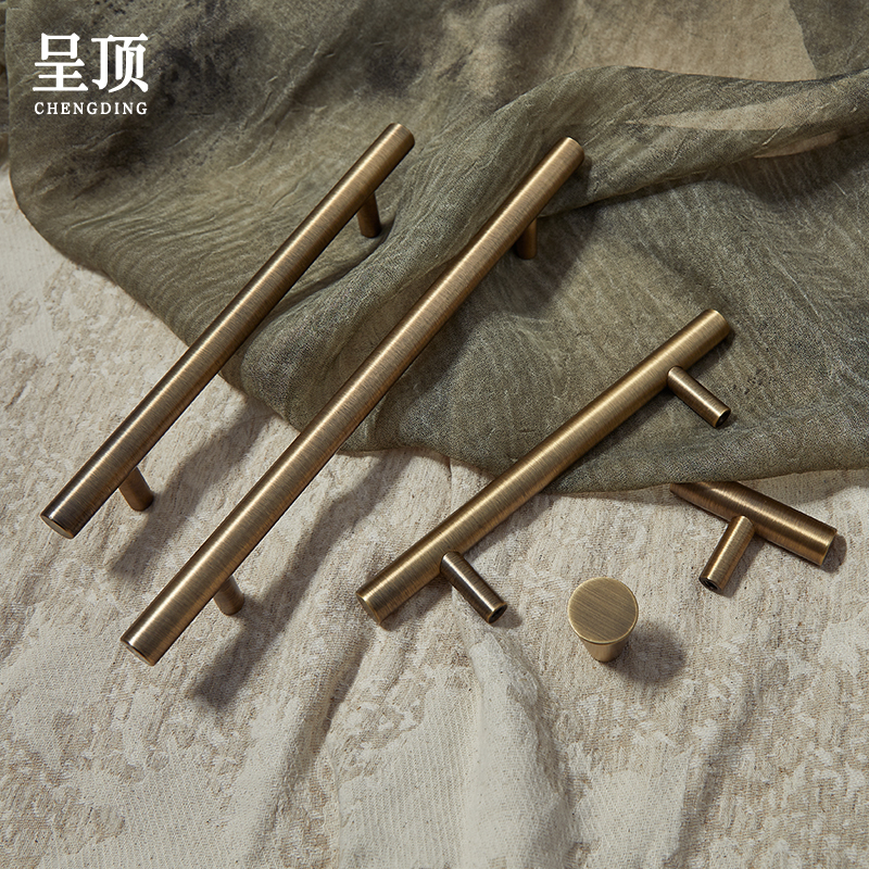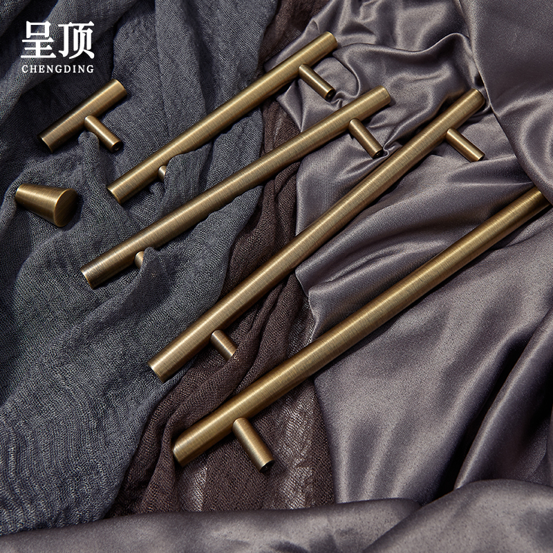 呈顶古铜色黄铜长拉手把手抽屉衣柜门现代简约复古橱柜子厨房仿古