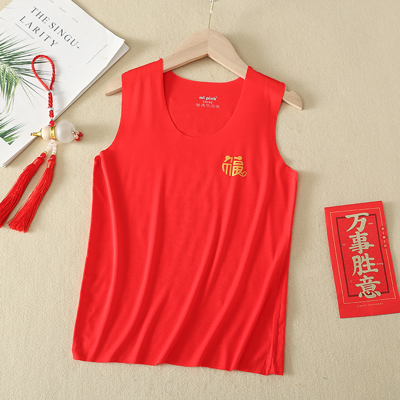 新年儿童红色背心莫代尔男童本命年女童吊带无痕贴身打底内衣12岁