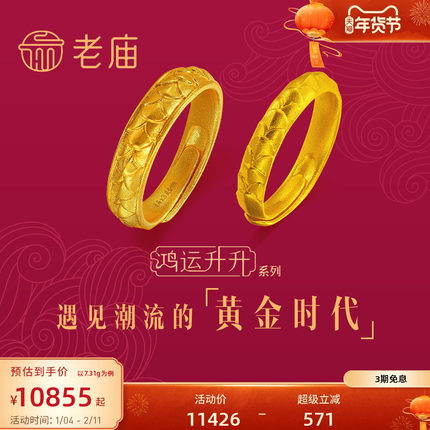 老庙黄金鸿运升升古法黄金佳偶龙鳞足金戒指情侣手饰结婚婚嫁正品