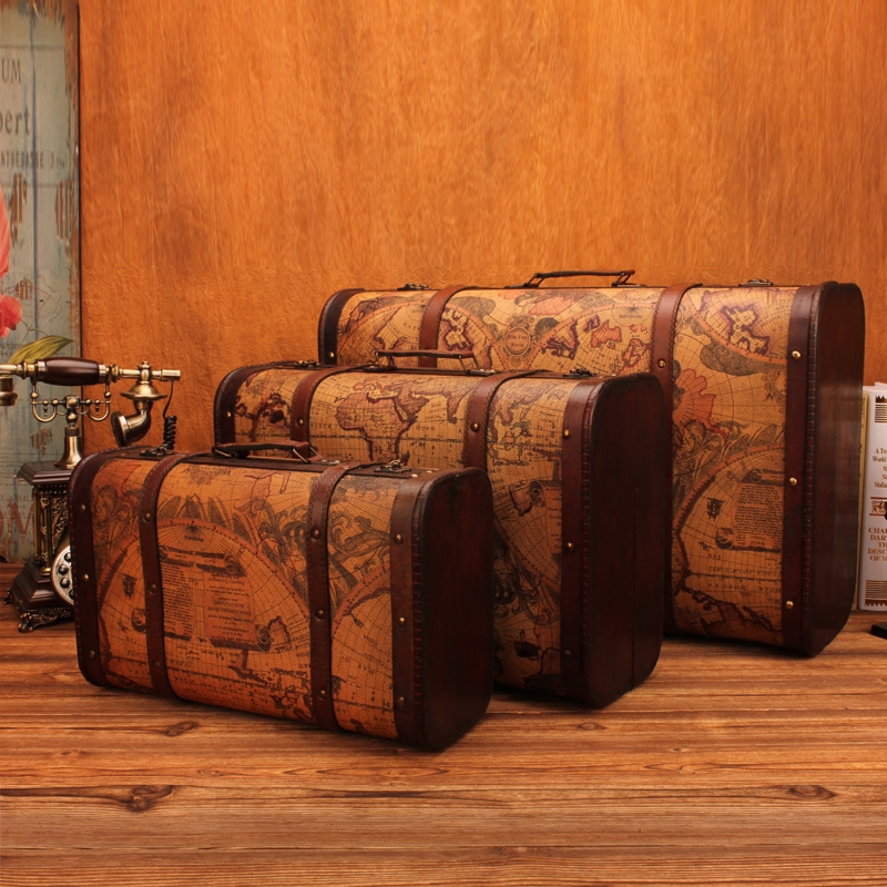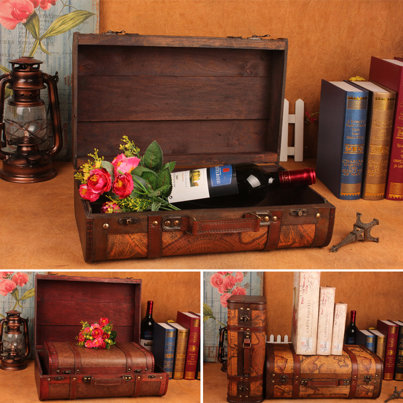 复古老式手提箱摆件欧式皮箱收纳箱木箱子橱窗怀旧拍摄道具装饰品