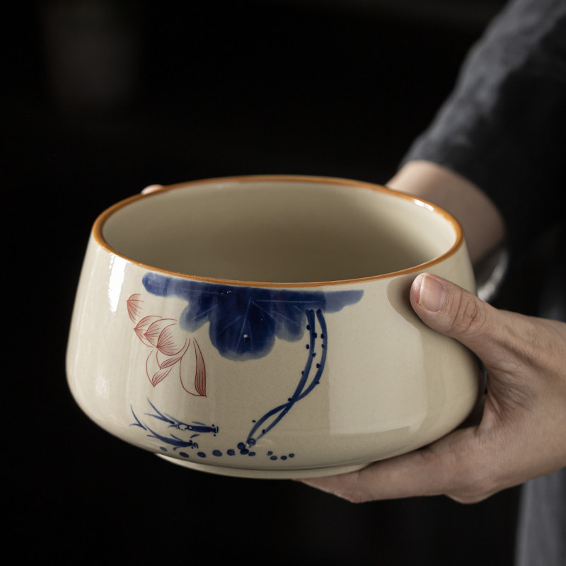 草木灰茶渣缸渣桶废水缸建水茶道茶叶缸茶盆家用大容量茶洗笔洗
