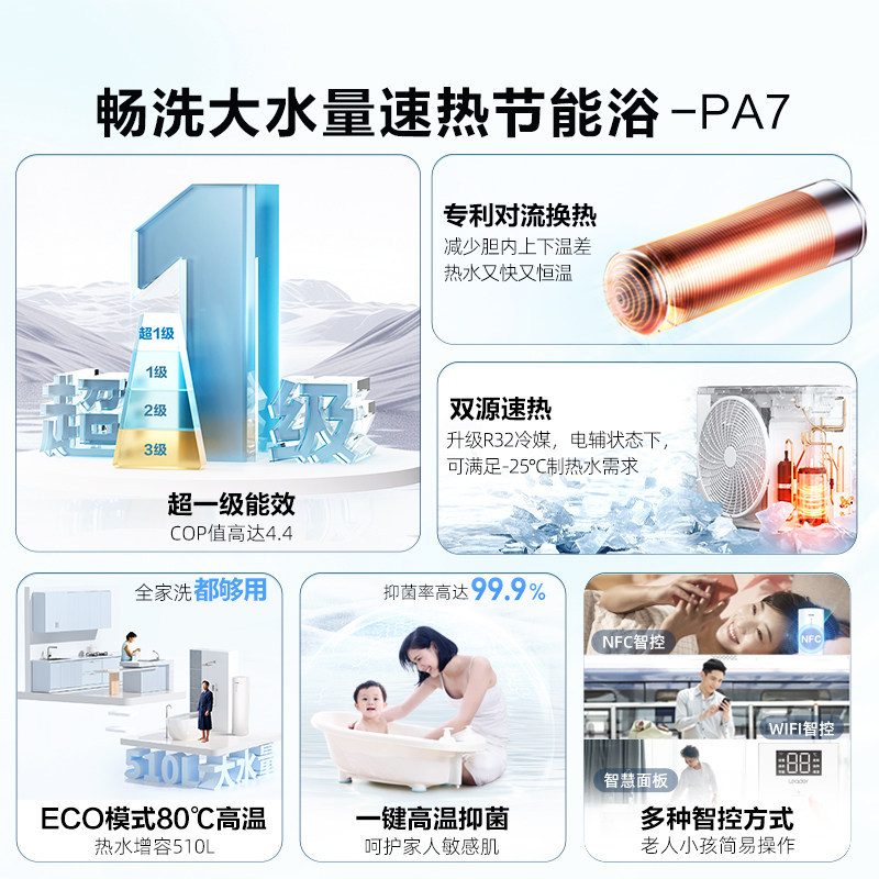 海尔出品统帅空气能热水器热泵家用大容量200L一级能效官方PA7
