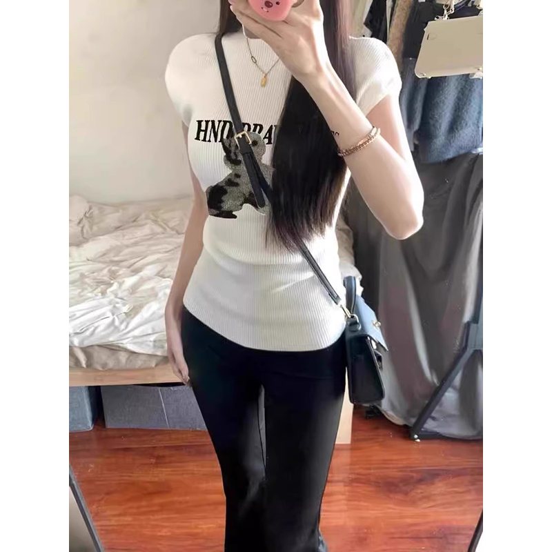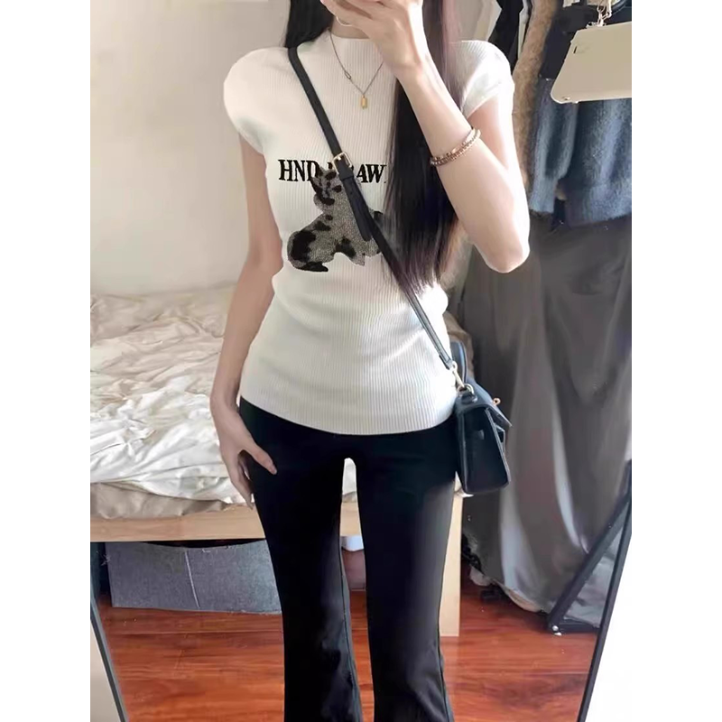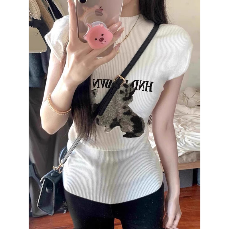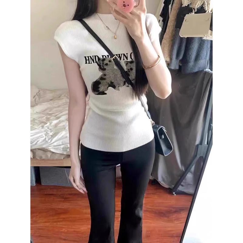 美式复古半高领卡通印花背心女设计感修身甜辣妹气质螺纹无袖上衣