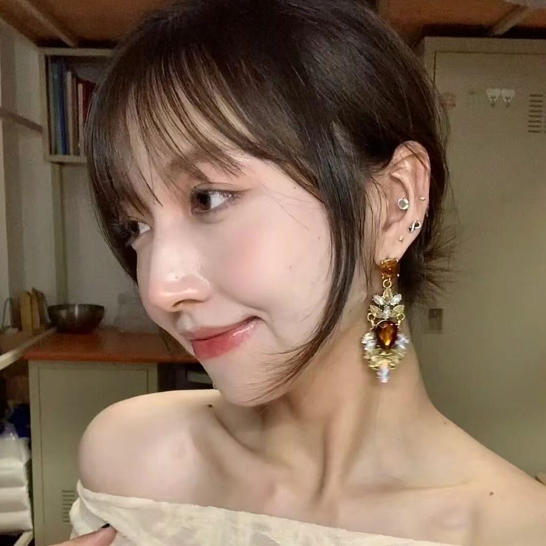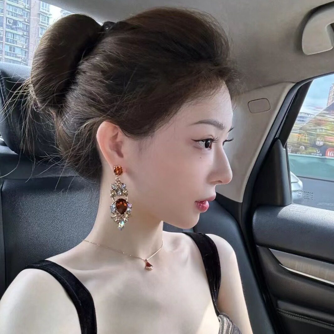 矜贵感轻奢千金大小姐耳饰复古重工满钻锆石夸张耳环长款气质耳钉