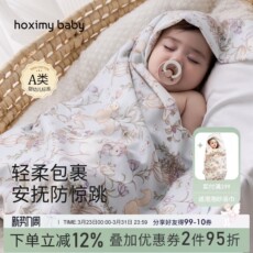 imomoto婴儿包被新生儿防惊跳小抱被秋冬季初生宝宝包单四季恒温