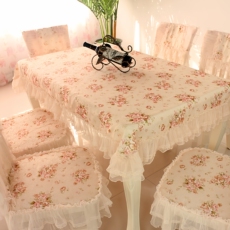桌布餐椅套田园蕾丝餐桌布布艺台布餐椅垫椅套坐垫套装桌布椅子垫