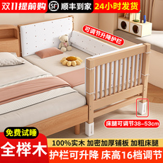 榉木儿童拼接床大床带护栏加宽床拼接床边高低可调婴儿床实木小床