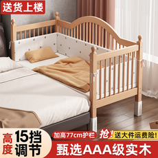 高低可调榉木儿童拼接床带护栏加宽床拼接床边宝宝婴儿床实木小床