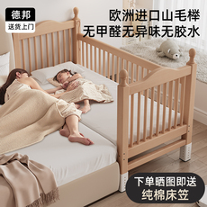 榉木拼接床婴儿床边加宽大人可睡实木儿童床侧边小床大床拼接神器