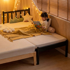 榉木儿童床子母拼接床加宽大人可睡婴儿宝宝床边实木小床平接大床
