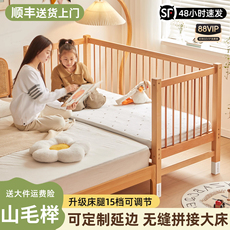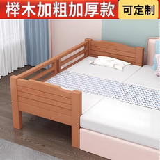 榉木儿童拼接床加宽床边床宝宝小床实木带护栏定制婴儿床拼接大床