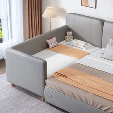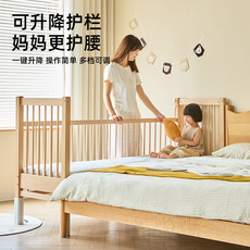 爱里奇榉木拼接床儿童床床边加宽床大人可睡可升降围栏实木婴儿床