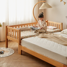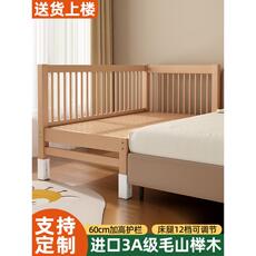 榉木儿童床拼接床大床带护栏加宽床边床单人床宝宝婴儿床实木小床