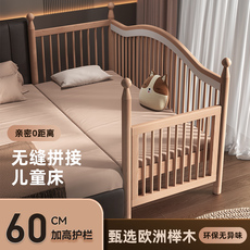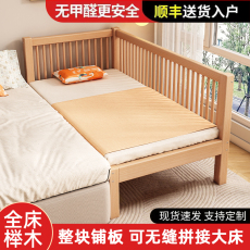枫眠榉木婴儿拼接床实木加高带护栏加宽床大人可睡小床宝宝儿童床