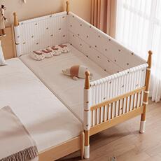 榉木婴儿拼接床小床拼接大床卧室儿童房实木宝宝床加宽边床带护栏