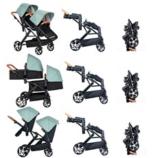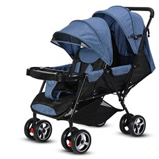 双胞胎婴儿车推i车二胎 大小宝 双人推车可坐可躺 轻便双睡篮折叠